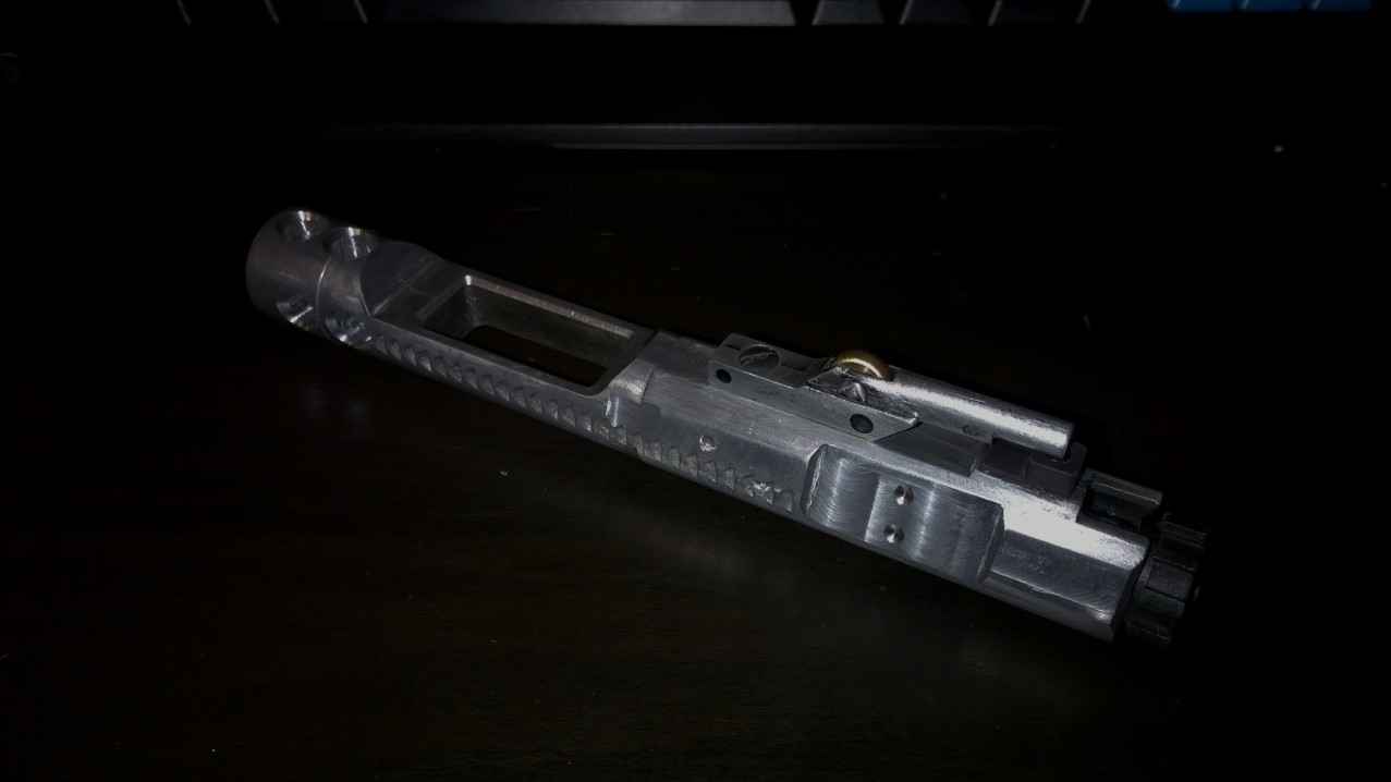Was building a M4 GBBR, wasn't very satisfied when the WE bolt carrier arrived. So I googled some images of custom AR bolt carriers and started drilling/milling mine to make it slightly more acceptable. (my camera doesn't really demonstrate how good it looks in person)
