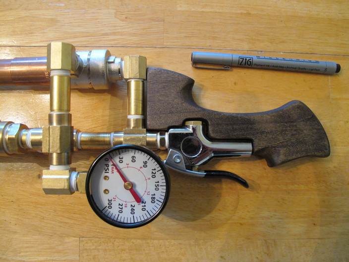 In some of my previous posts where I assembled all the pipes just to see if it worked... and the assembly really felt like a pistol. This got me thinking, and I realized that I already had all the fittings needed to re-design and make a pistol.