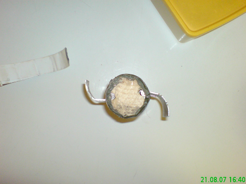 There is a brass cap on the tip to make it heavier an i added orange tape for better visibility.