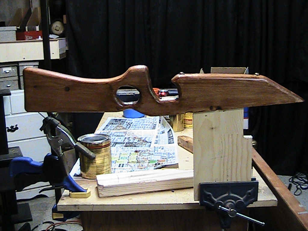 Very nice gun. Congrats! I wish I had a workshop and tools like yours to work with. As opposed to the other posts, I like the beefy stock, especially since you could loop the air tank into the new hand grip to give it more air volume if you wanted to.