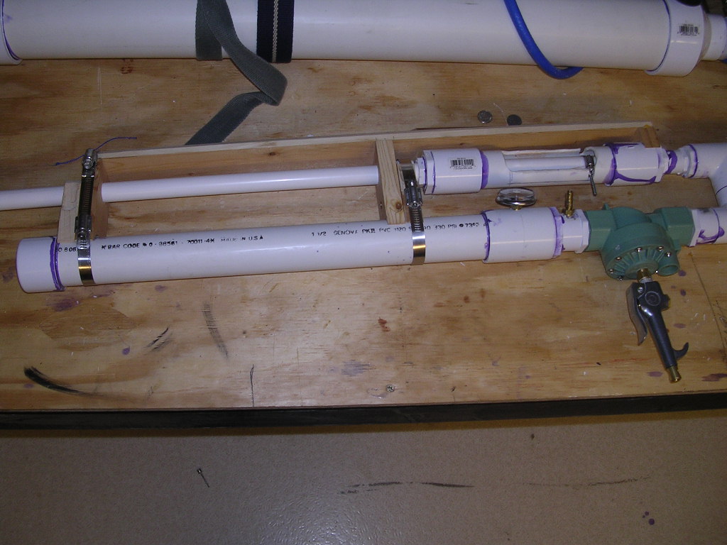 the breech is from PVC ballistics with a slight change. The stock is blocked of with a piece of pvc. I am waiting on a scope but I can still fire it pretty accurately. My ammo of choice is a stick of fiber glass wrapped in duck tape to fit, it goes through a 1/4" plywood at 15 feet.