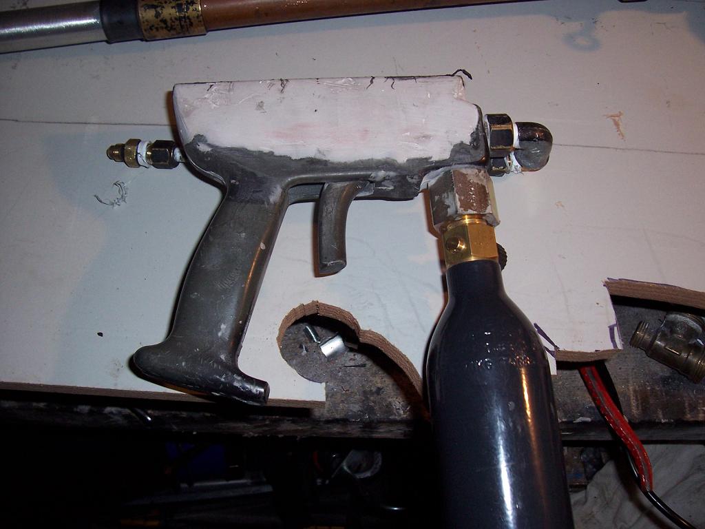 wow, looks great. I'm afraid I dont get how the marbles can slip past the bolt though... what did you put on the pressure washer handle? bondo?