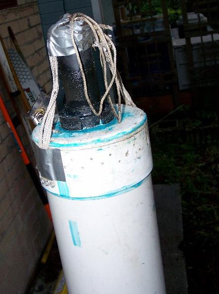 The cut off part of the end cap was glued to the 5 foot long pipe with the intention that the two could be
