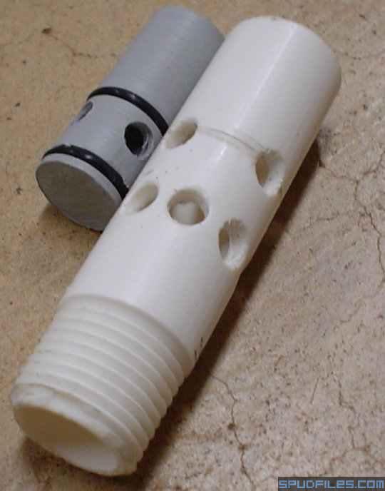 Sorry, no exact plans. It would take a lot of time and be very difficult for anyone to do without a lathe, but if you have specific questions I can help you out. As for the parts it is pretty much all off the shelf pvc (some modified) except for some PVC rod, a couple springs, some screws, and various rubber sealing parts. Edit, and yes where the extendable stock comes out is the chamber. If I forget to extend it before pressurizing the gun it will kindly remind me by slamming into my gut.