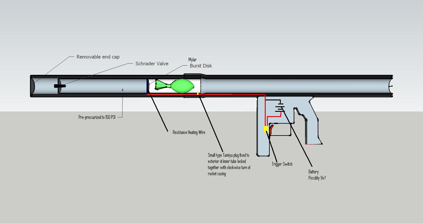 I like the idea of the triggered burst disk. An electrical trigger for the burst disk would be perfect for this launcher. I looked into the resistance heating wire the spudding handbook talked about, but I would like to avoid ordering it online. Is there a better alternative, or at least somewhere to look locally for some? Has anyone tried the wire burst trigger set up?