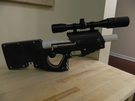 So I made some changes to the gun... I received in the mail my 10.5" long 1 in 12" twist rifled long Colt barrel. Got it here: http://www.ebay.com/itm/45-Caliber-Rifl ... 1628797451 I made a bolt action mechanism using 1" PVC pipe. I created a new upper receiver to mount the scope.