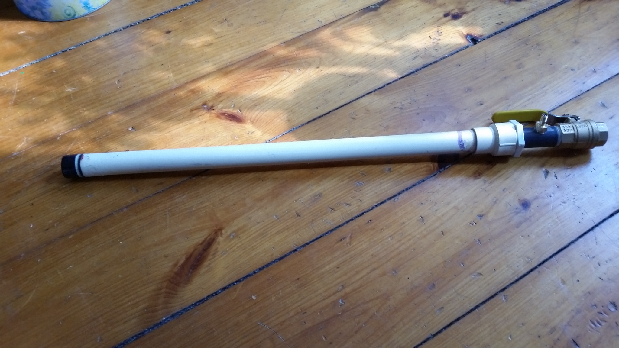 Hi guys. I put the bigger coaxial project on hold but meanwhile I have built a smaller 1/2" barrel 1" chamber version. The total length is 27" and the barrel length is about 19". The pilot valve is a 3/4" ball valve. The gun is pressurized by a 1/4" npt tank valve threaded into a 2"// 3/4" pipe nipple. The back threads off, allowing servicing on the piston, which is made of proto putty ( silicone mixed with food colouring to make it set way faster) molded in a 3/4" long piece of 1" cpvc ( the same stuff as was used on the chamber). It's operating pressure is usually around 100-110 psi (which is fine because I used the right materials and cements). I will later be building a better one for a tutorial on my YouTube channel. Thoughts?