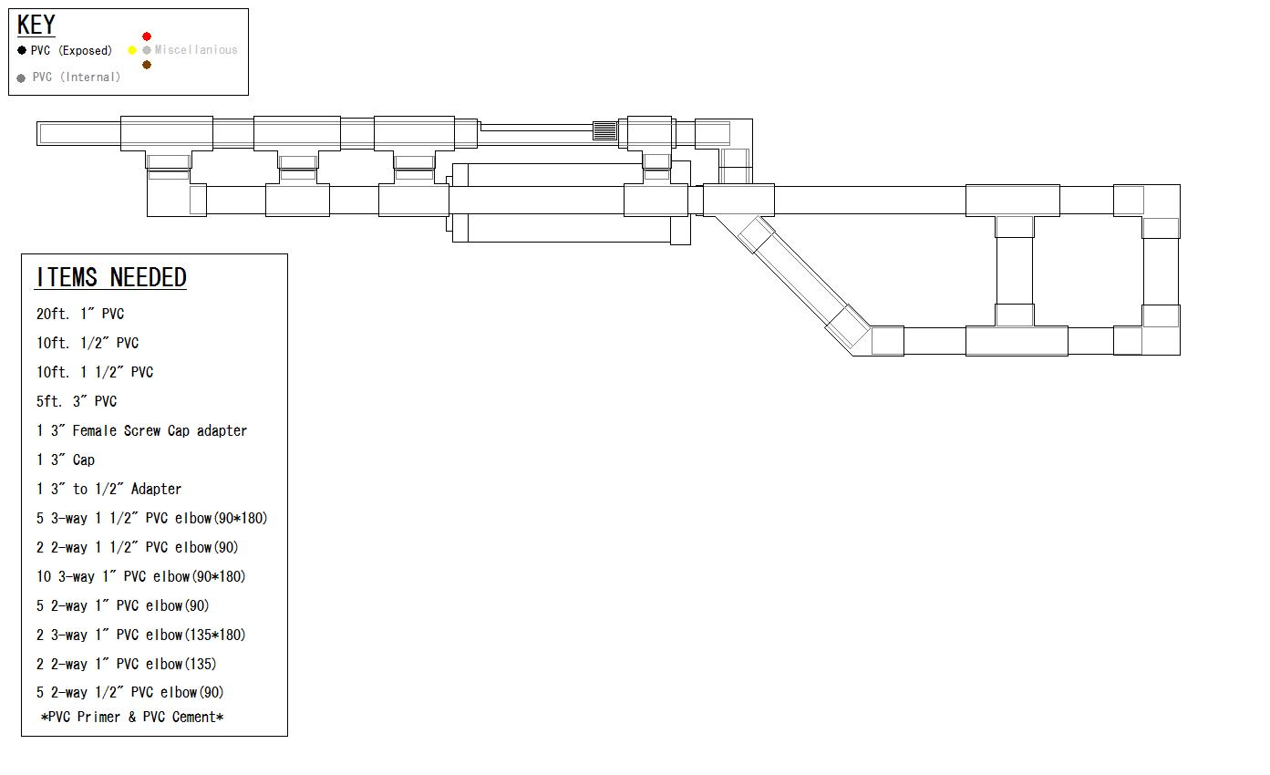 Take a look at BlackH's guns. Both of these do a good job with air and fuel intake.popomon wrote:lol, But i just use 2 elbows to make it face the other direction right? Please reply soonstarman wrote:I like your planning effort here...nice drawing! Be sure to take in account your fueling and ignition design. As others have mentioned, the rear cleanout cap in the face won't be much fun...