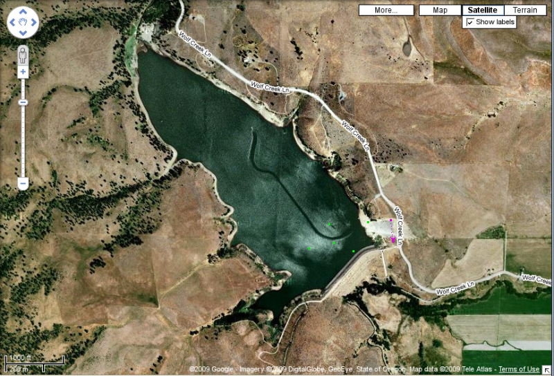 Having shot tennis balls at 100 PSI with a 2 inch valve cannon, I know the distance claim is most likely bogus. I agree. Much more data is needed for that pneumatic. 100 PSI won't do it unless the barrel is about .6 miles long with a really big chamber. Real world data for tennis ball looks like below. Click on the photo for full size. GPS measured. Launched from shore. Green dots are landings. The far shot was a water filled tennis ball. The pink was a line toss with a full water bottle cross the parking lot.
