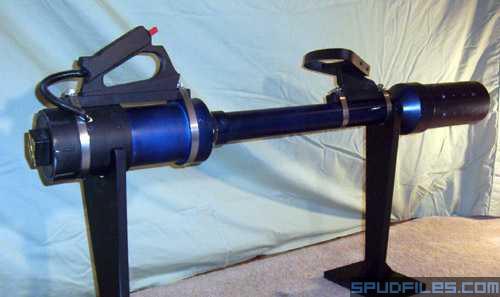 thats a nice spud gun but, it is a little like the lotica. how long ago did you make that it is pretty cool. where did yiou get the handles? ive been trying to find the same ones but its know use i looked everywhere. what kind of propellent do you use?????