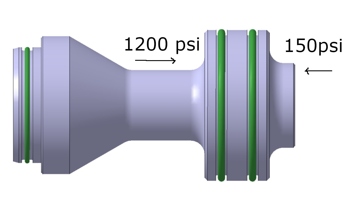 I used 1200psi on the combustion side as the max combustion pressure that I could get on HGDT for a 10x propane mix was around 1150 psi. The 150psi of the pilot side is a complete guess, I can't imagine I would need to go that high but I see it's better to overestimate that underestimate.
