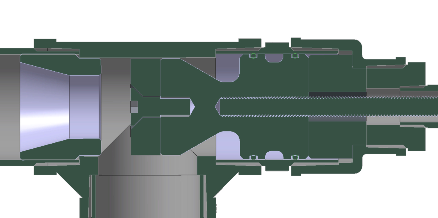 The bumper has also been increased to completely fill area behind the position whilst limiting the total travel to 15mm (30% of barrel ID) – I’m hopefully that this reduced throw will decrease the stress on the rear of the cannon. The small piston at the rear that seals the pilot area requires 11.4mm of travel to expose the o-ring and vent the volume. Because this piston is just threaded on the rod, I can adjust this if I get any issues with piston bounce.