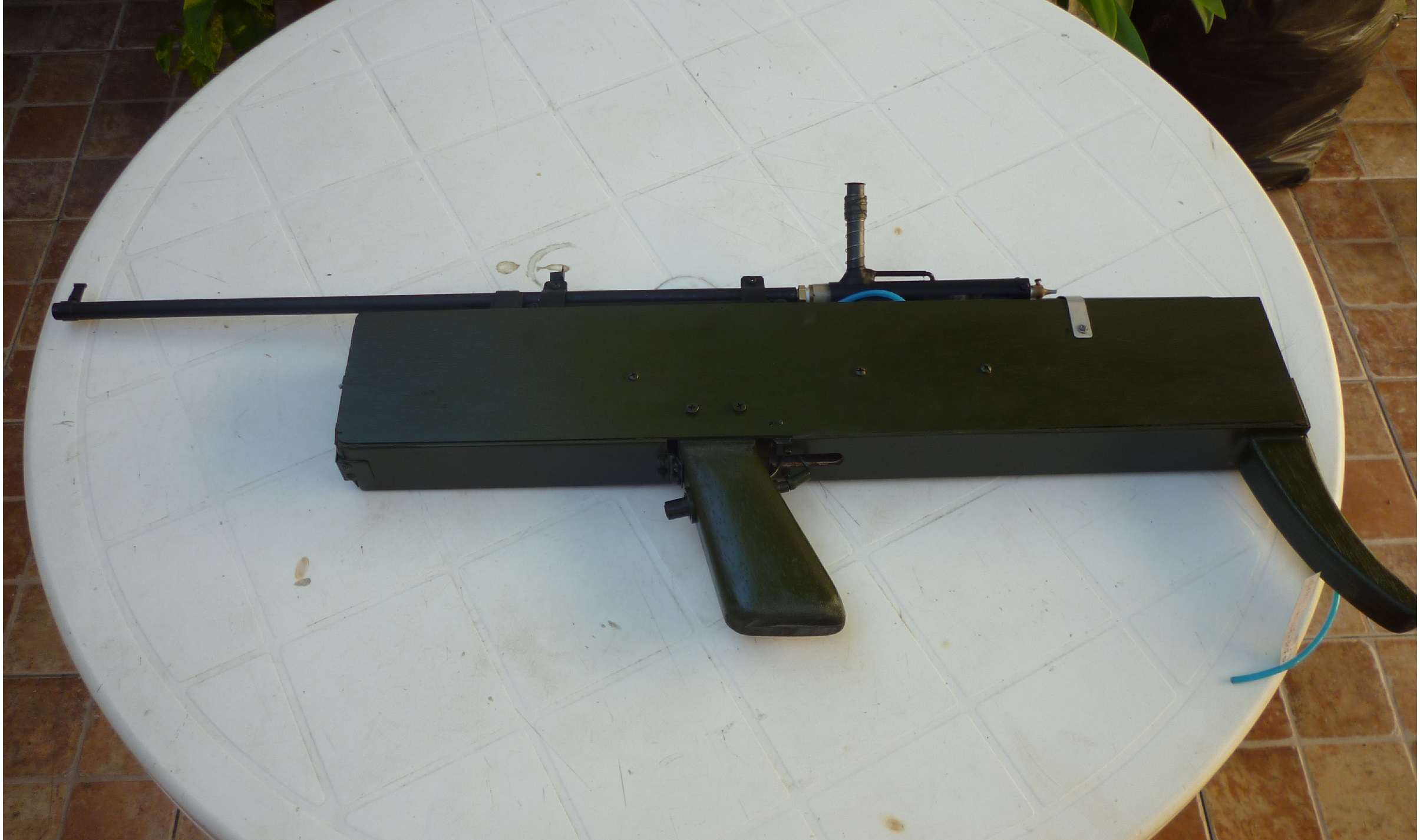 This semi-automatic prototype spends many lead bb's, because once fired they are irretrievable, because they are damaged, even when shooting at a soft target, a thin cardboard box with rags inside.