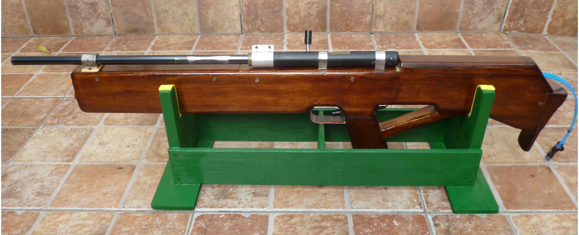 I was working to finalize and test this weapon, I think it was decent, and it shoots very well. I built a stand to store the weapon, and to use it when needed.