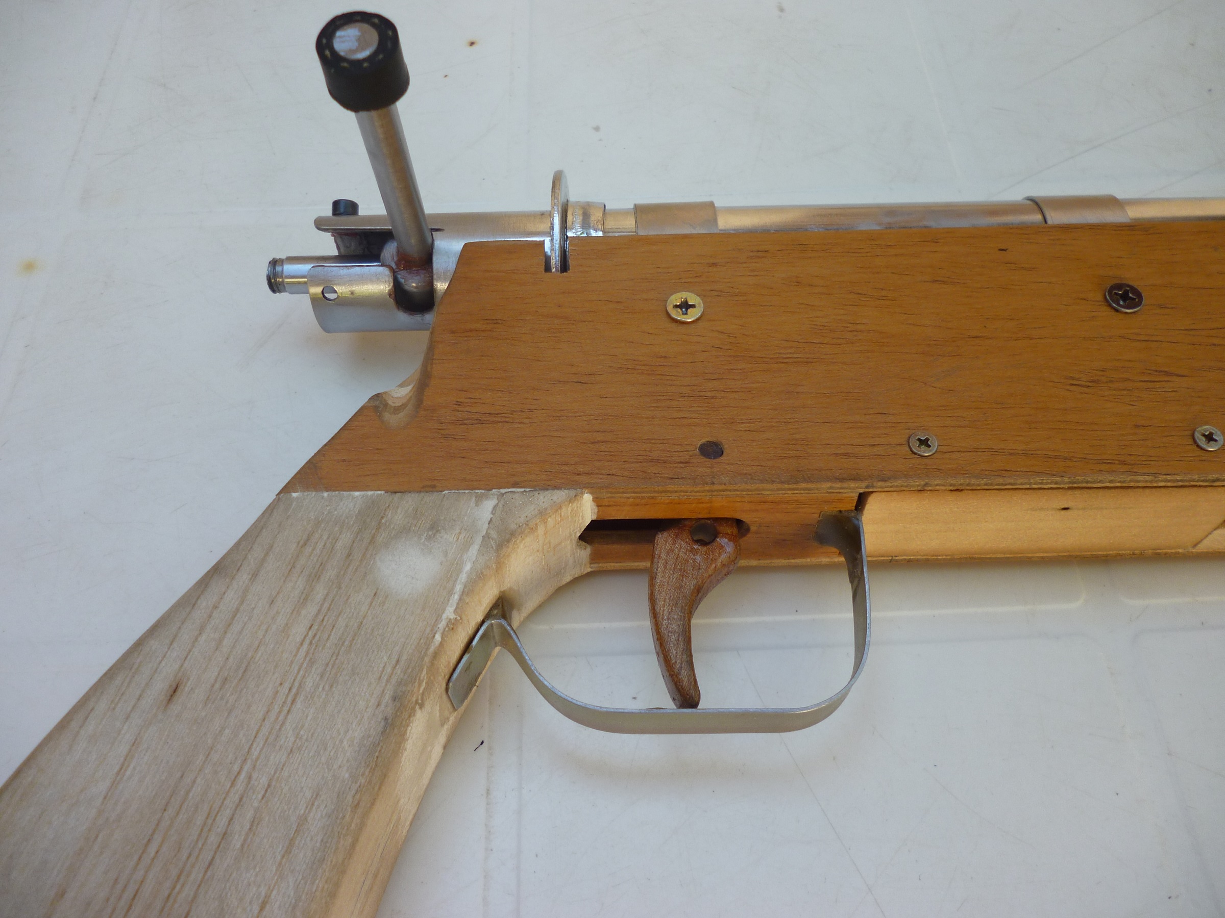 I am manufacturing the wooden stock, to put the gun on top. When the work is finished I will upload the photos.