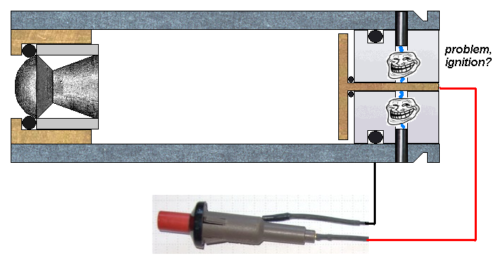 ignition - fail! - click click click... and I think I know why, might have missed an obvious short point with the retaining pins...