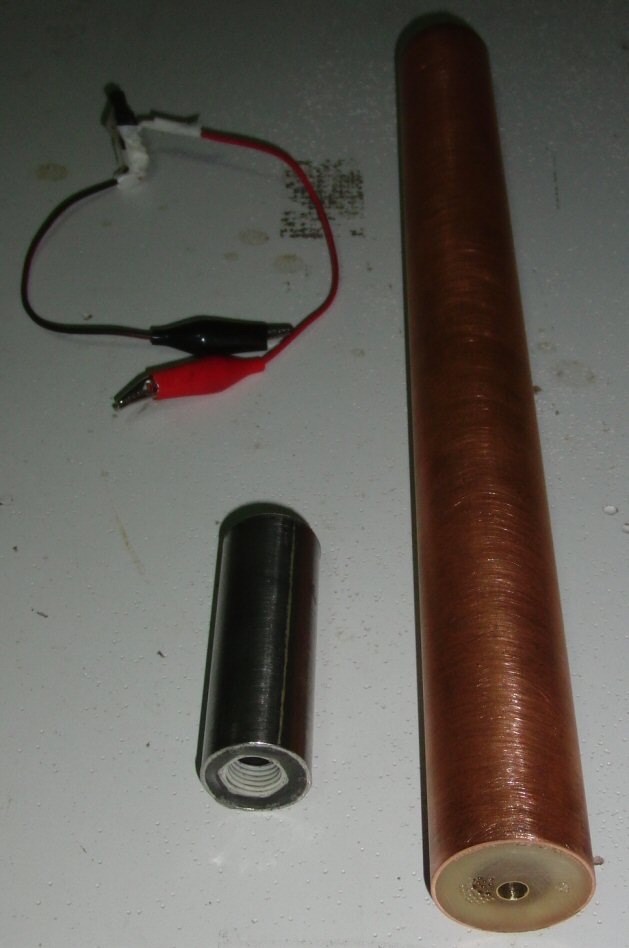 Here's the (roughly sanded) suppressor, chamber and ignitor setup: