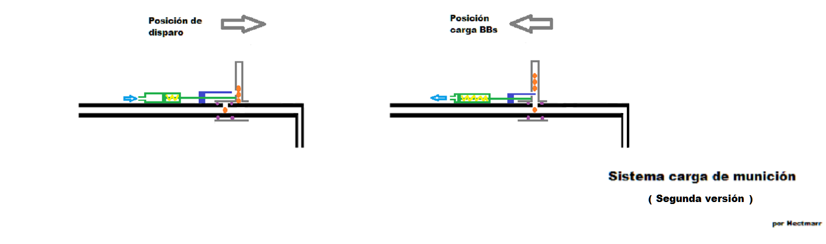 In short it requires regulation of the main spring, the spring of the small retaining ball, the spring that presses the bbs into the tube where they are housed, coordinated all this, with the resistance of the main retention o`ring. This regulates the pressure within the system. If it is short the bb does not enter. I have regulated this to the maximum to ensure the entry of the BBs inside the pipe.