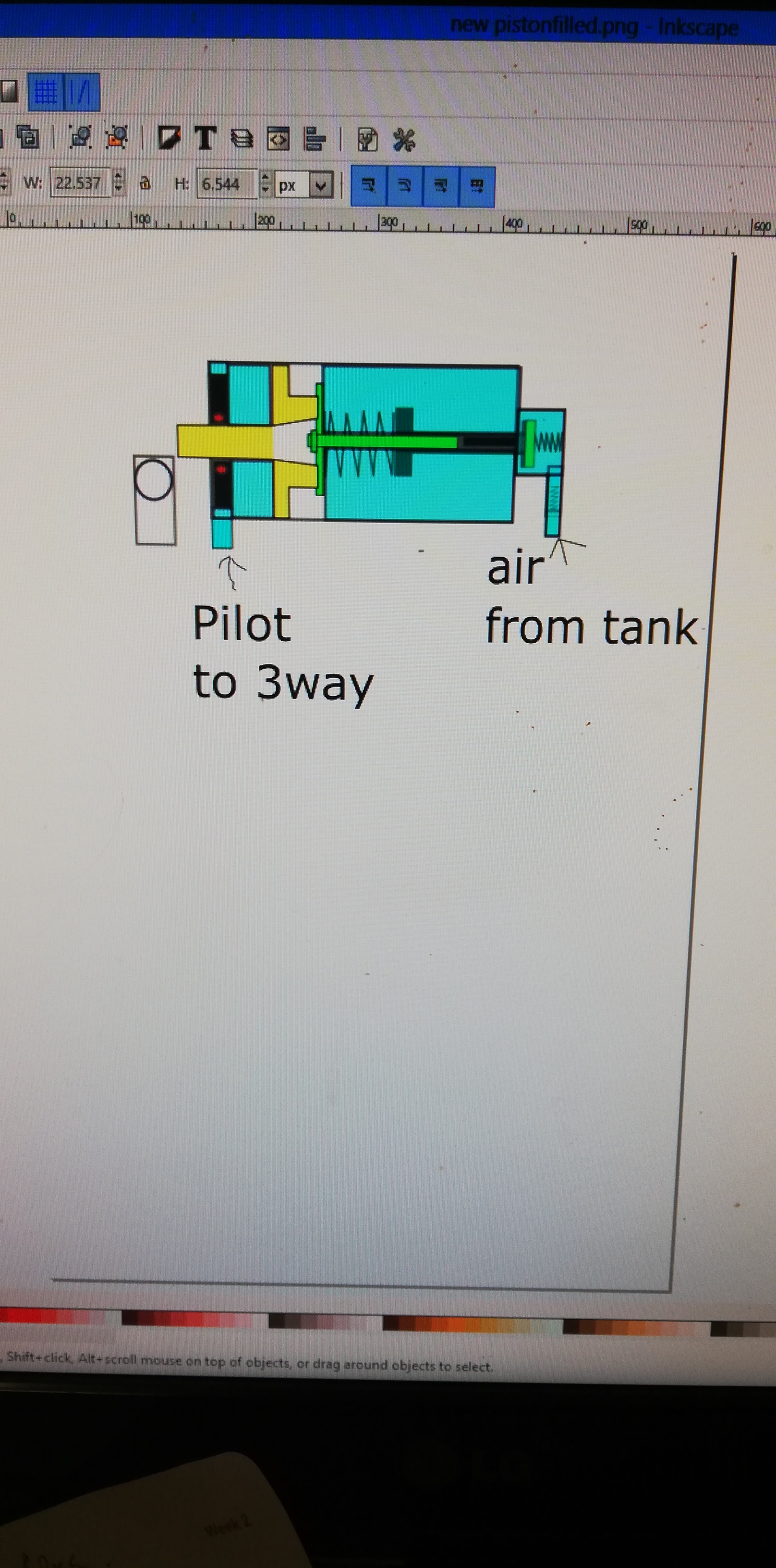 Piston valve, nozle normally in closed position (retracted).off 3 way N. O. Valve. front of piston pilot.