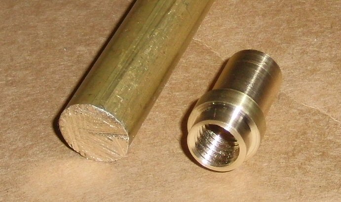 A threaded brass rod would have been less hard than the tap though, and also not as well centered I guess. Also note that the cut was very light as I already turned to almost size all the pieces. The cut was less than 0.5mm (0.02")