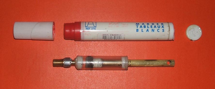With a barrel length of just over 3 inches and a tiny chamber, I'm prediciting performance will be very much on the low end of the scale, but it's one of those "had to be done" projects so if it works while still looking mostly like an innocent marker I'll be a happy man, we'll find out tomorrow :)