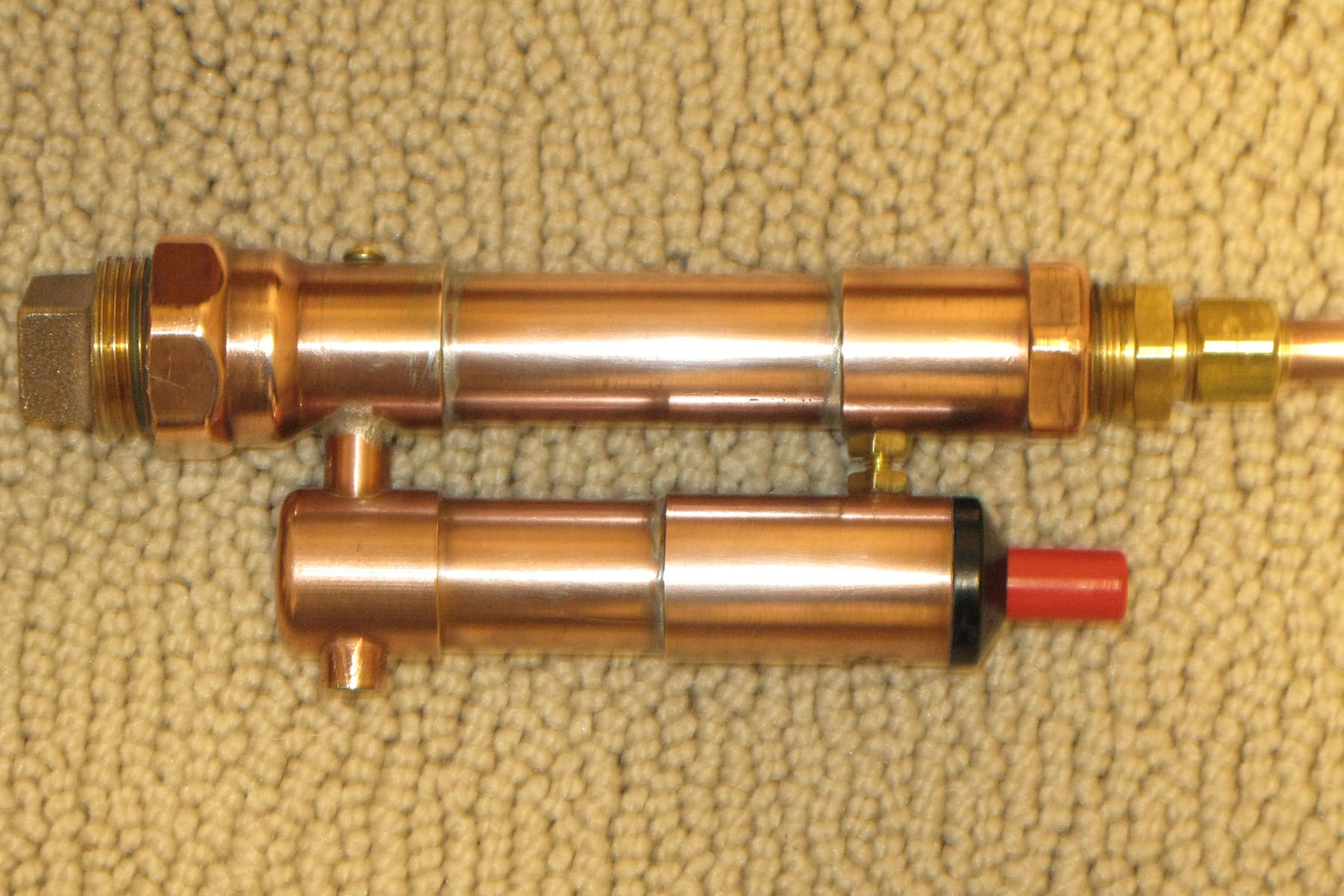 This is my first cannon posted. It is a copper mini combustion with 1/4" diameter barrel. Good for shooting q-tips around the house using map gas as a propellant.