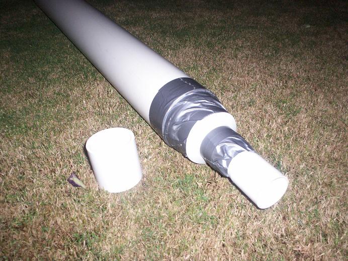 It has a 100mm (4") outer casing 1m long and a 40mm (1.5") pipe running through it that is 130cm long. there is 30 16mm holes spaced down the barrel. The outer casing is held onto the pipe by dwv fittings as i didnt realy feel like shelling out 50$ per fitting. i also did not glue it because i wanted to be able to take it apart it and because its a proof of concept for me.