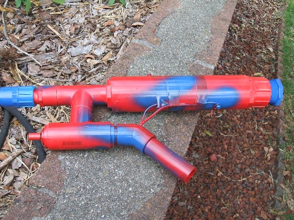 This one's pretty fun too, along with a decent paintjob. My friend wanted a gun similar to my 4th of July PB gun, and was going to buy one from me for $40. Instead, I built him this one, for $20.