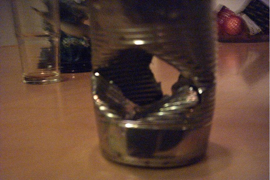 First some damage to a steel can.The entry hole runs from one side to the other.Viewed from the front it nearly cuts the can in half.The exit hole is smaller but looks much more jagged.Bent the entire can out of shape.