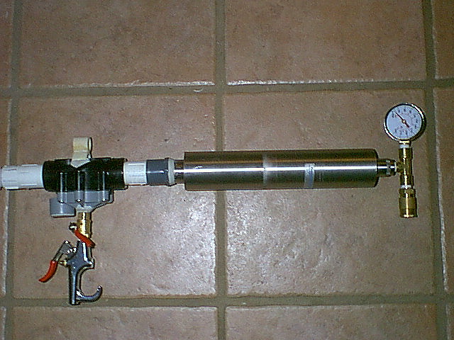 There is a 3"D X 15"L PVC Chamber waiting to be pressure tested for use with this cannon. I could not do this project without making a homebrew chamber. My first PVC chamber had a leak(forgot to give the fittiings a 1/4 twist). Found yet another resource here at Spudfiles for solvent welding. So we will see what happens.