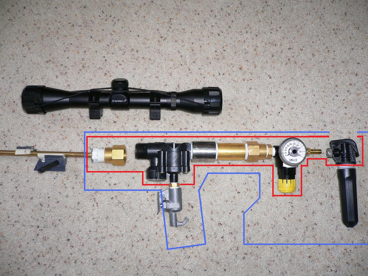 I'm making a shell that squares the round components in the gun (red line in picture) so that chiselling my inlay in the oakwood stock peices will be much easier. I don't want to use a different stock because this stock is being specially modelled from the sniper rifle in Halo 3. As for # of shots with the co2, it depends on what psi i shoot at, but until i am done testing thoroughly i'd say a ballpark range is anywhere between 20-40 shots anywhere between 80-140 psi each shot.