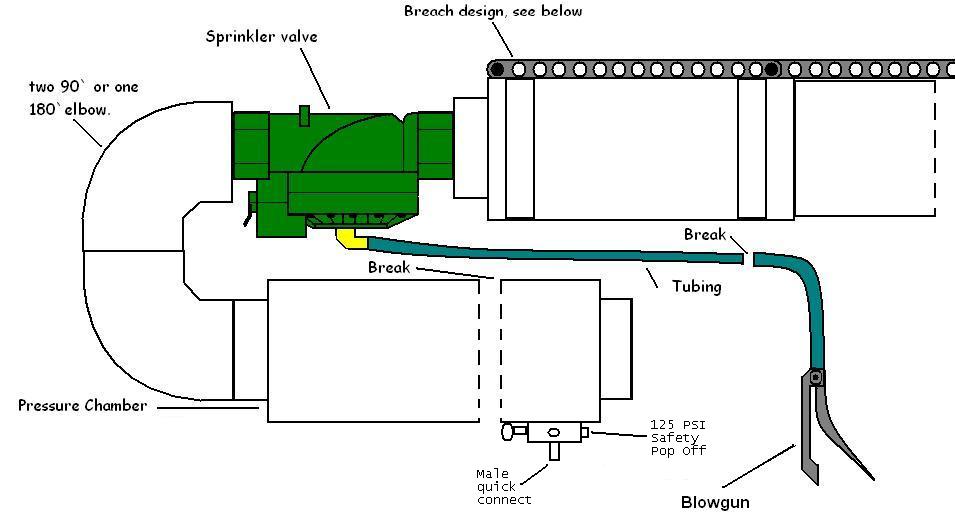Or I could just use pvc sheeting to cover the thing, and make it look pretty angular. So, it's up to you guys again; which path do I take for the body? I'm rather partial to the plasma pistol myself, though I have to admit that the angular PVC body would be quite elegant. Without further ado, here is the diagram! If you want to see how a hammer valve works, just look at Mateo's earlier post about the topic (by the way thanks for the help on that one).