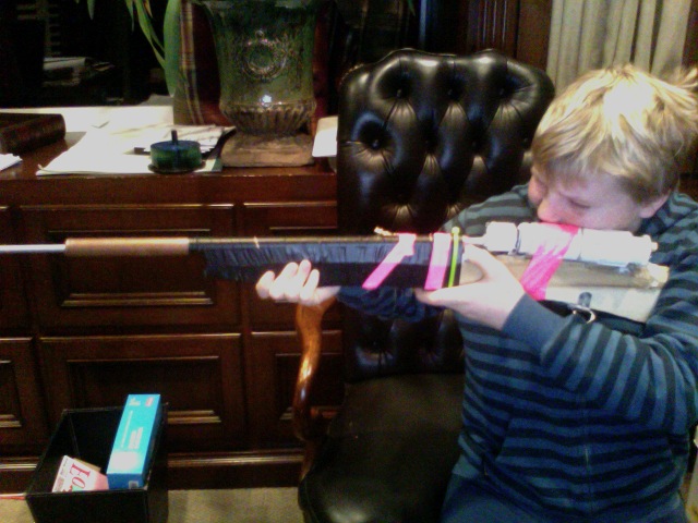 lol at the looks of all your guns, at least it has a decent stock, but seriously.... how much do you spend on electrical tape each year!  but I have to give you credit, you can really churn these guns out quickly mate, and when you mean the tape is temporary, does that mean you put it on just for the photo? nice work though, in twenty years or so, when your 19 you might have an UN-ghetto gun but at this rate...