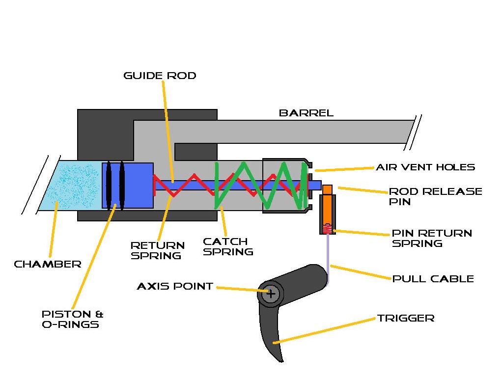 Yes, damage pics soon to come when it stops raining. Also, I was thinking this was a good project to do to inspire myself and others to make more snipers with the same level and/or more detail, but with more power for other long-distance/accurate projectiles, maybe if I can find some cheap way of making sabot-discarding fin-stabilized ammo or something. I think if I made another one I'd put a piston valve like the one I designed in theory (pictured below) in it also. And have a more powerful air source, like Paintball CO2, but those setups are so expensive... I don't know. This gun wasn't supposed to be a power beast anyways because it is just for airsoft, so plinking and skirmishes only- has to be somewhat people friendly from a distance. I feel it's perfect for what it was designed for.