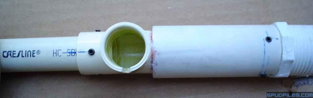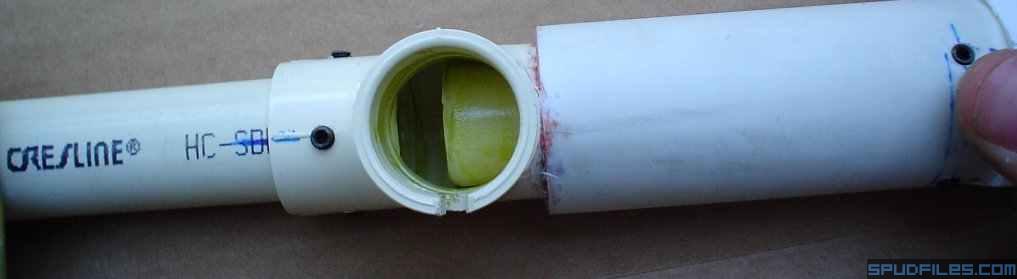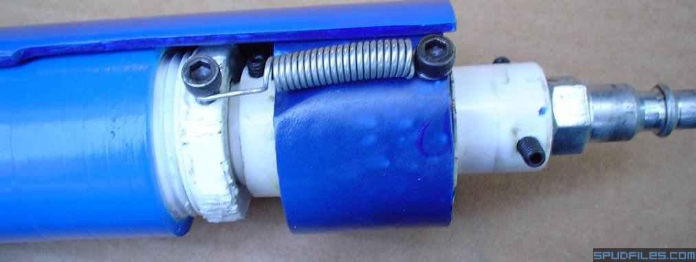 The bolt is 3/4" CTS CPVC, the tee is 3/4" CTS CPVC, the outermost tube on the loading mechanism is 1" sdr21 I believe, and the threaded fitting that is in the back of it is a machined down 1" NPT x spigot adaptor. Every thing else is just random parts machined down to act like bushings. Whatever I could find to fit. Oh and the spring is from an orbit watermaster sprinkler valve.