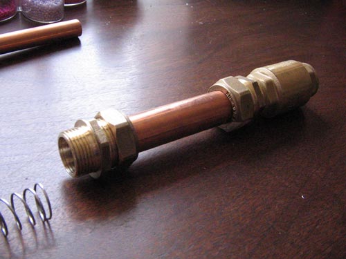 I shortend down the piston and got rid of the copper piston housing when I found out that the fitting was holding the 20mm pvc. I am going to place a tee on it with a female quick disconnect coming out the bottom and the pilot valve on the other side of the piston. I moved the barrel forward a very small amount.
