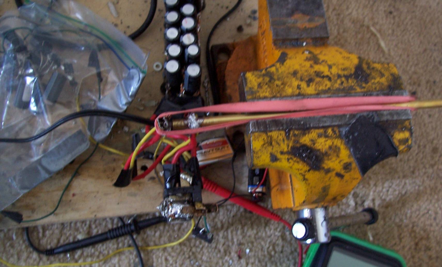 I only got a few shots before the insulator started arcing over, here's the testing setup.