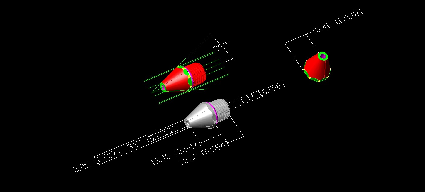 Then, it is turn down to 14mm to match the body diameter, which will result in a nice cylindrical junction, and help to have bigger flats to screw it in place with a wrench. The 3D shows that clearly.