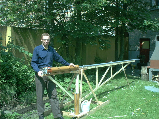 The barrel is 5 meters of 50mm OD pipe. I did some calculations, and found out that with the reletively low pressure of a combustion gun, a barrel of this length was needed.
