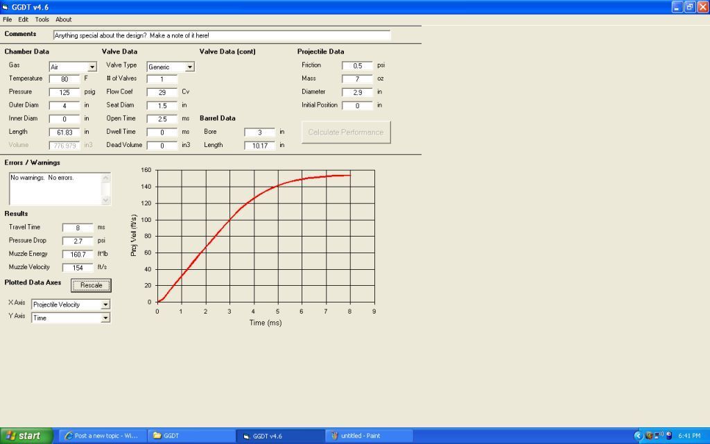 After running some calculations on GGDT it calculated that the optimum barrel configuration for a gun with a 3" barrel and chamber would be a 24" chamber and a 48" barrel @ 125psi. I thought that the general consensus was the opposite for pneumatic guns.