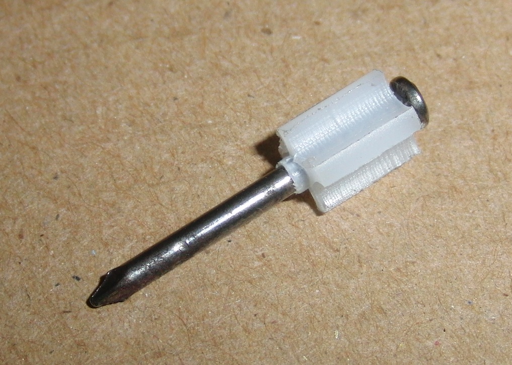I've been having a play with milled collars to turn small masonry nails into stable darts without any modification of the nail itself. In 6mm calibre, a simple airsoft BB serves as a sabot.