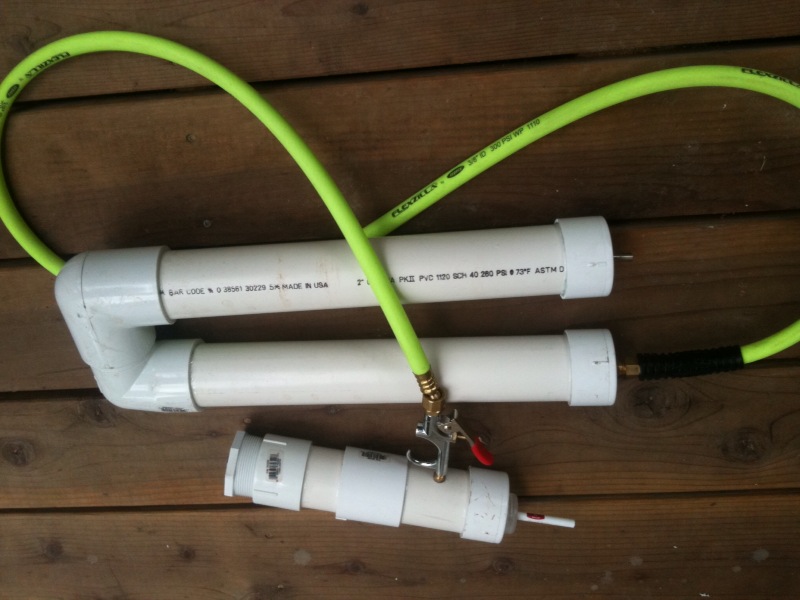 Yes the tank is still PVC, but I have a safety cutoff switch built into the air compressor. I'm interesting in a setup that would still use high pressure air for the propulsion system. I was thinking of maybe getting one of those high pressure metal or carbon fiber paintball tanks that can take about 3000 psi and regulating down, but I have no idea how I would charge any tank beyond  150 psi (the limit of my air compressor). I have considered using a refrigerator compressor, but the price of such devices is beyond my current capabilities. Any suggestions?