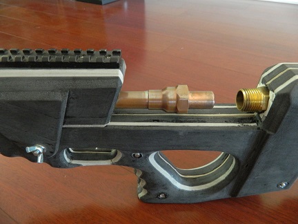 Ok, thanks sorry I missed the description under photo. I really love the design/style of the gun, especially the stock, really finishes it off giving it a professional manufactured look, but at the same time better as it is unique, I hope you are proud of it, I know if I could make something that smart I would have a big grin everytime I looked at it, this is one of my favorite guns on spudfiles and any other homemade guns I have seen, Well done its superb!