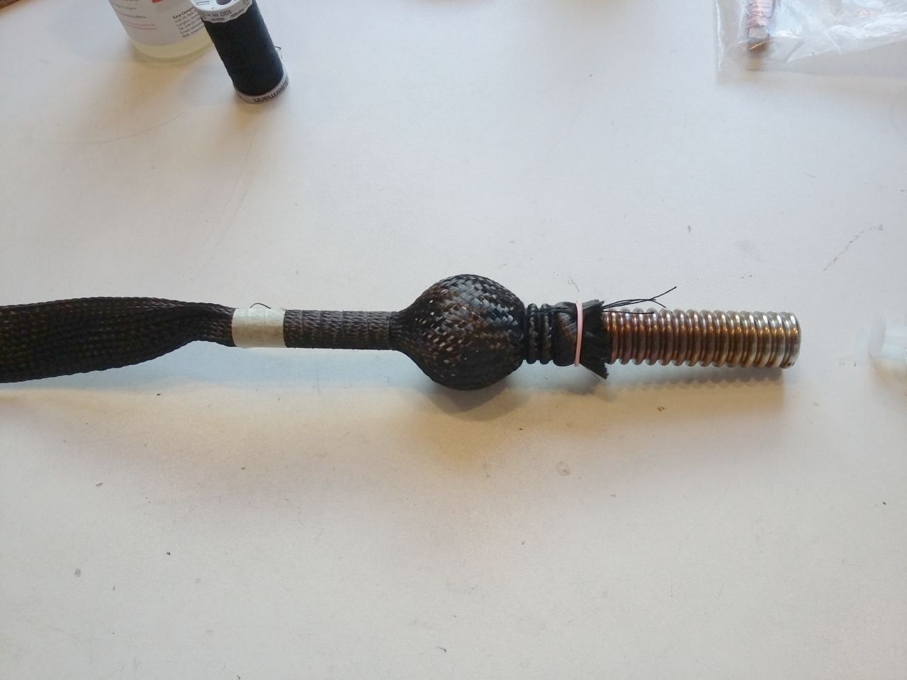Oh, and I did my first carbon fiber thingy today, probably need 2 or 3 layers of sleeve before it's good. Pictures are before and after resin has been applied.