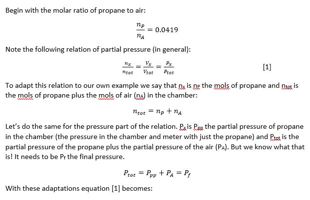 I tried plugging is some test numbers into your Pm equation (the second one down) and I was getting slightly different results. It might be hard to figure out this discrepancy because we took different approaches. I used partial pressures and did not account for atmospheric pressure because it was on both sides of the equation. But I want to look into this further to see if I'm making an incorrect assumption here, because it might be that I suspect. And you're approach uses mix number... Just to be clear n=1 (1x) means a regular old combustion right? For now here are my calcs worked out. I adapted it to use the same variable notation as you I believe.