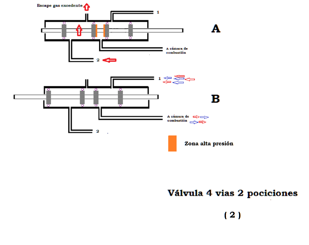 When the 4-way valve is closing the combustion chamber, position "A", this valve resists the combustion pressure, so it must be resistant.