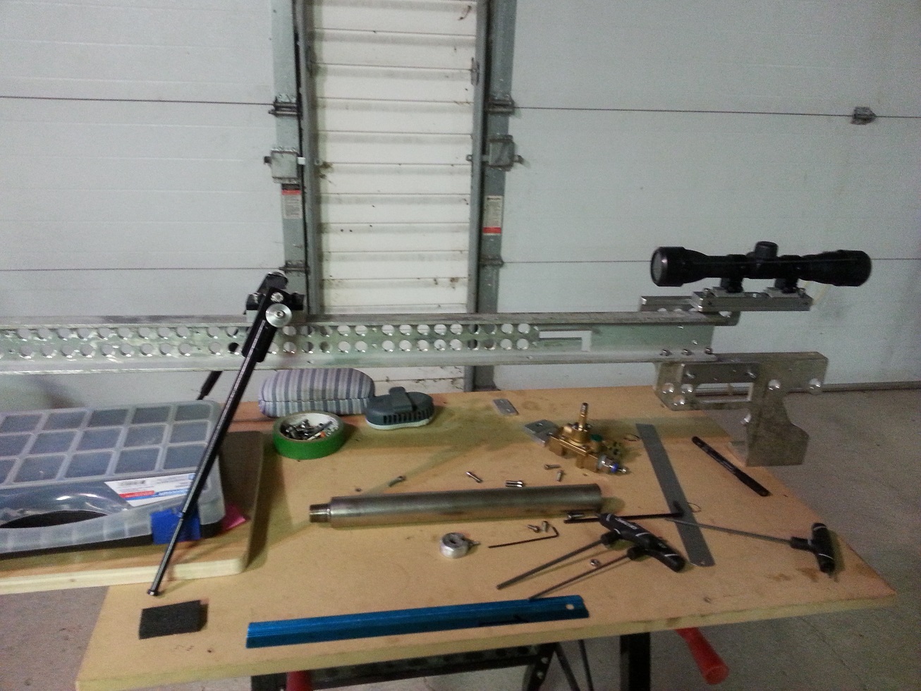 Barrel cut down to 750mm, attached and locked in position, breech hole cut.