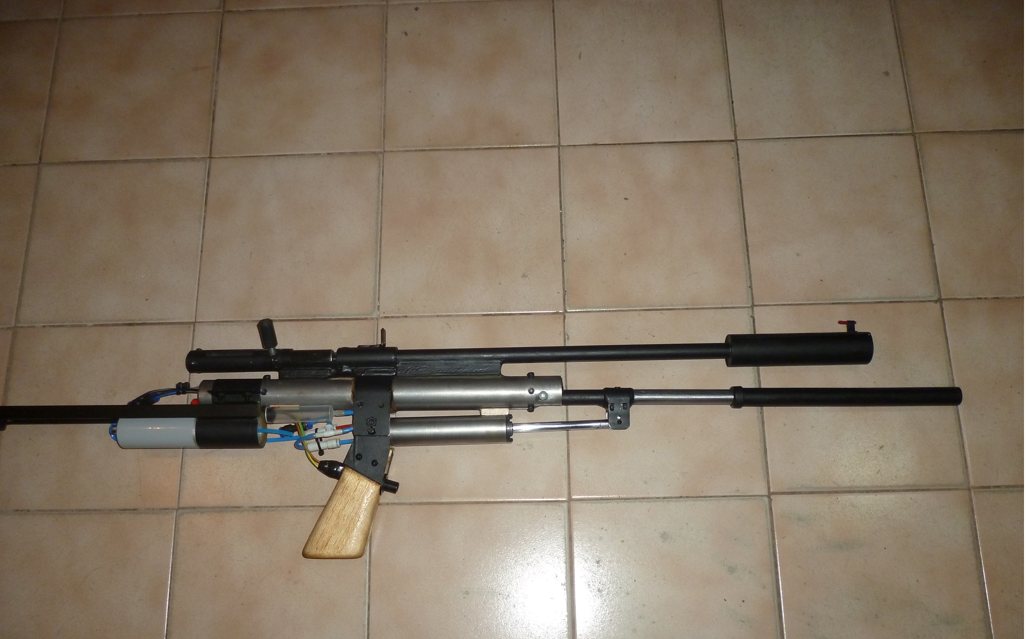 The weapon is an autonomous hybrid that shoots steel balls of 1/4 ", to 8X.