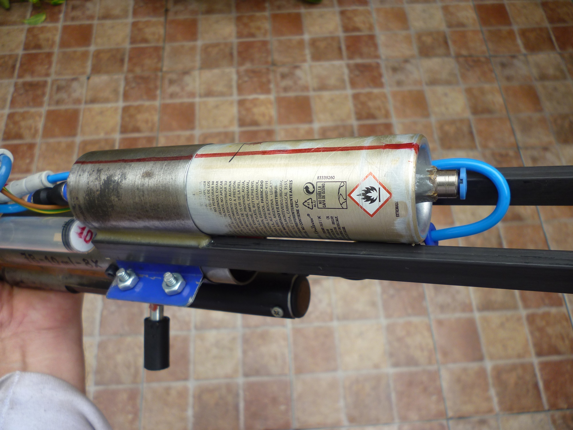 The red color command seen in the fifth photo is the valve to depressurise the combustion chamber after the shot. Frequently there is some burnt gas inside and it is necessary to press to completely clean the combustion chamber of burnt gases.