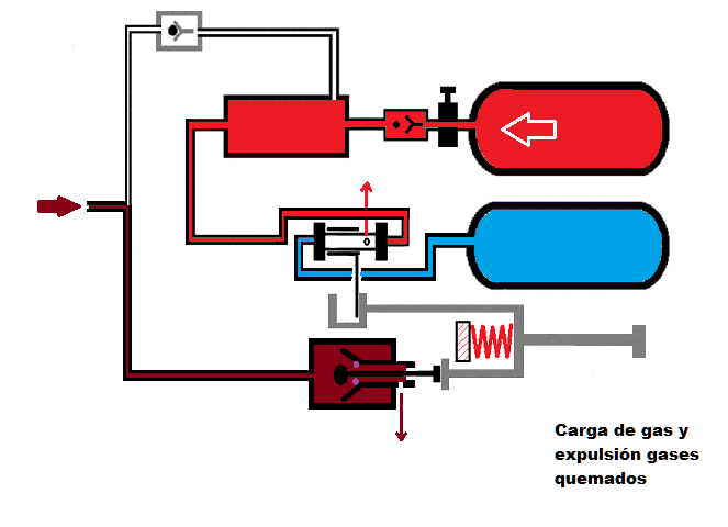 The two states would be controlled by a small electric motor. Being balanced valves, they are very soft to open and close with working pressure. Apart from this, the travel is less than in the ball valves, which are harder to move. The motor would operate for 1 second, no more, to charge the gas, and then a spring would return to the compression position of the mixture. Tell me your opinion about this
